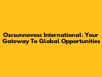 Oscsunnovosc International: Your Gateway To Global Opportunities