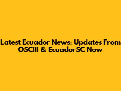 Latest Ecuador News: Updates From OSCIII & EcuadorSC Now
