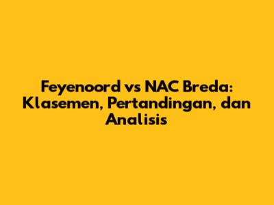 Pertandingan antara Feyenoord dan NAC Breda selalu menyajikan dinamika yang menarik dalam dunia sepak bola Belanda. Klasemen menjadi cermin dari perjuangan kedua tim, sementara hasil head-to-head memberikan gambaran tentang rivalitas mereka. Analisis performa pemain kunci, prediksi, dan harapan dari penggemar melengkapi cerita pertandingan ini. Setiap pertemuan adalah bagian dari sejarah sepak bola Belanda. Pertandingan antara kedua tim selalu memberikan tontonan yang menarik bagi penggemar sepak bola. Kedua tim akan terus berjuang untuk meraih hasil terbaik. Sepak bola adalah olahraga yang dinamis dan selalu menyajikan cerita-cerita yang menarik.