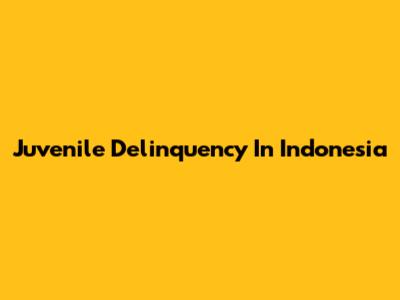 Juvenile Delinquency In Indonesia