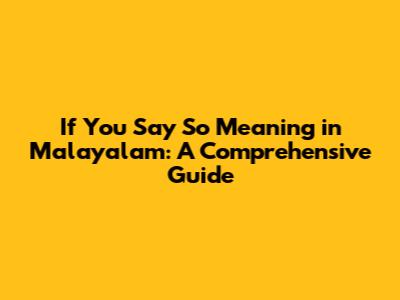 If You Say So Meaning In Malayalam: A Comprehensive Guide