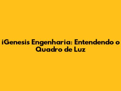 IGenesis Engenharia: Entendendo O Quadro De Luz