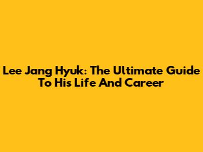 Lee Jang Hyuk: The Ultimate Guide To His Life And Career