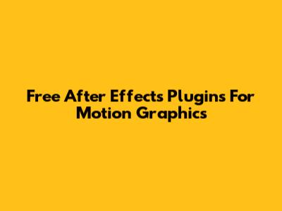 Free After Effects Plugins For Motion Graphics
