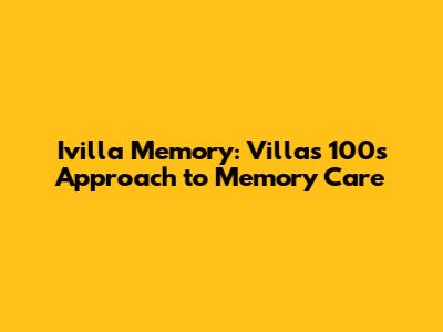 Ivilla Memory: Villas 100's Approach To Memory Care