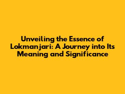 Unveiling the Essence of Lokmanjari: A Journey into Its Meaning and Significance