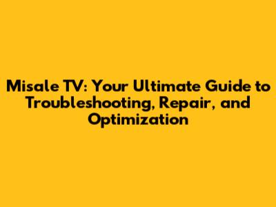 Misale TV: Troubleshooting, Repair, And Optimization Guide