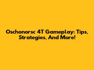 Oschonorsc 4T Gameplay: Tips, Strategies, And More!