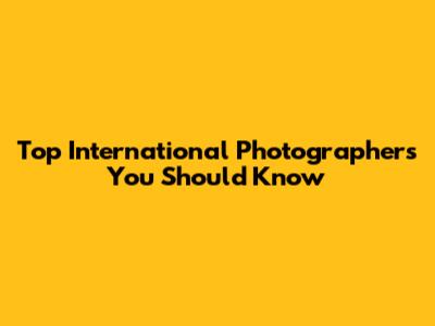 Top International Photographers You Should Know