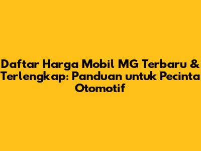 Guys, kalau kalian lagi kepengen upgrade tunggangan atau baru mulai kepincut dunia otomotif, pasti lagi nyari info soal daftar harga mobil MG terbaru, kan? Nah, pas banget nih! Di artikel ini, kita bakal kupas tuntas soal harga mobil MG, mulai dari yang paling terjangkau sampai yang paling canggih. Gak cuma itu, kita juga bakal bedah spesifikasi singkatnya biar kalian makin yakin sama pilihan. Yuk, simak terus!