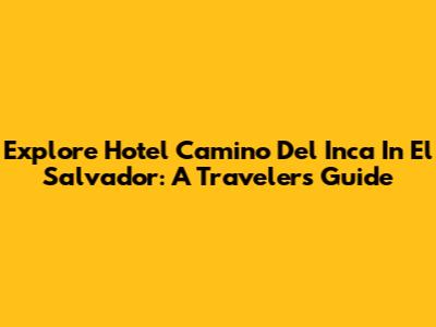 Explore Hotel Camino Del Inca In El Salvador: A Traveler's Guide